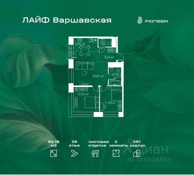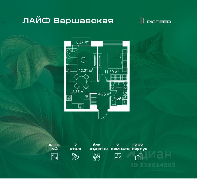 В районе Москворечье-Сабурово продается 2-комнатная квартира площадью 40.69 м². Она расположена на 8 этаже в 262 корпусе нового жилого квартала LIFE Варшавская. Площадь комнат: гостиная — 11,64 м² спальня — 12,68 м² кухня — 5,01 м² ванная — 6,13 м² В LIFE Варшавская мы создали идеальные условия для жизни молодых людей и семей с детьми, тинейджеров и спортсменов, домохозяек и бизнесменов. Жилой квартал LIFE Варшавская удачно расположен: 5 минут до станции "Варшавская" 10 минут до станции "Каширская" 18-25 минут до парка-усадьбы "Коломенское", Битцевского леса и музея-заповедника "Царицыно" Богатая инфраструктура — это визитная карточка проекта. На территории работают детский сад на 160 мест и школа на 900 мест с IT-полигоном и мультифункциональным спортивным стадионом. В квартале разместились пешеходный бульвар, игровой плейхаб "Змейка", спортивный кластер с полями для футбола и волейбола, площадка для выгула животных. На первых этажах жилых домов открыты магазины, кафе и рестораны, салоны красоты, арт-галереи, сервисы бытовых услуг, медицинские центры. Концепция жилого квартала создана ведущими архитектурными бюро. Структуры малоэтажных кварталов дополняются высотными башнями-доминантами. Такой тип застройки позволил сформировать освещенную приватную территорию.