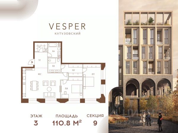 Продается квартира с 2-спальнями, без отделки в корпусе 8.2 общей площадью 111,6 кв.м. на 8 этаже. Знаковый проект для ценителей комфортной городской среды от Vesper. Квартал площадью 3,7 га расположен на Кутузовском проспекте и воплощает новую концепцию идеально сбалансированного места для жизни. Благодаря удачному расположению и развитой транспортной инфраструктуре отсюда одинаково быстро добираться как до Кремля и ММДЦ "Москва-Сити", так и до Рублево-Успенского шоссе. Планировочные решения проекта Vesper Кутузовский включают широкую линейку жилых форматов и подойдут для самых взыскательных резидентов: помимо базовых вариантов квартир доступны эксклюзивные лоты — пентхаусы с террасами и квартиры с патио. Продуманная приватная инфраструктура, собственный ландшафтный парк, близость магазинов и ресторанов делают Vesper Кутузовский достойным выбором для самых взыскательных клиентов: как для тех, кто любит уединение, так и для резидентов, которые стремятся быть в центре событий. Концепция жилого квартала разработана ODA Architecture. Разная высотность 10 строений, плавные линии и главный паттерн из арок, размер которых меняется в зависимости от дома и этажа, создают визуальный ритм квартала и делают его легким и элегантным, наполненным солнечным светом и воздухом. Продам 2-комнатную квартиру рядом с метро Киевская.