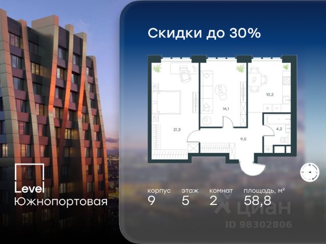 В северной части района Печатники продается 2-комнатный апартамент площадью 50.30 кв.м без отделки. Апартаменты расположены на 4 этаже 13-этажного корпуса 14 в жилом комплексе комфорт-класса Level Южнопортовая (компания Level Group/Левел групп). Отличная транспортная доступность: - 10 мин. пешком до станции метро "Кожуховская"; - 20 мин. пешком до станции МЦК "Дубровка"; - 3 мин. на авто до ТТК; - 13 мин. на авто до Садового кольца; - 15 мин. на авто до Бульварного кольца. Продуманный архитектурный проект: - авторская архитектура от бюро СПИЧ; - уникальные виды на реку, парки и достопримечательности города; - высота потолков в квартирах до 6 м; - окна высотой до 1,87 м с высоким коэффициентом сопротивления теплоотдаче. Расположение: Level Южнопортовая строится в северной части района Печатники - самой приближенной к центру. Здесь будет сформирован новый район "Южный порт", где построят крупный жилой и общественно-деловой центр, аналогичный Москва-Сити. В течение 10-12 лет в этом месте появятся не только жилые дома, но и развитая инфраструктура для жизни и работы. А еще совсем рядом находится набережная Москвы-реки, где планируется построить причалы для речных трамвайчиков и канатную дорогу. Уже сейчас вокруг жилого комплекса работают десятки магазинов и торговых центров, рядом расположено 6 парков, среди которых музей-заповедник "Коломенское". В 10 минутах пешком - 2 муниципальных и 2 частных детских сада, 7 общеобразовательных школ. Внутренняя инфраструктура: Для отдыха жителей в каждом корпусе предусмотрено лобби, оснащенное местами для отдыха, гостевыми санузлами и лапомойками, а в отдельных корпусах - камином. За счёт больших окон и высоких потолков пространства будут наполнены воздухом и светом. На первых этажах жилого комплекса откроются магазины, салоны красоты, фитнес-центр. Для детей строятся собственные детский сад и школа. Благоустройство: Внутренний двор комплекса разработан совместно с бюро GAFA. Основная идея - создать аналог Центрального парка в Нью-Йорке, гармонично сочетая высотные здания и большое изолированное парковое пространство. Вся площадь двора-парка будет огорожена и составит более 2 га, из которых 45% - озеленение. Одним из самых важных ландшафтных элементов здесь станет небольшая речка, наполняющаяся во время дождя. Вокруг неё появится сеть из островов, внутри которых расположатся тематические зоны спорта и отдыха. Технологии и инженерия: - автоматическая передача в управляющую компанию показаний квартирных счётчиков; - телефонная связь, телевидение и интернет на базе оптической мультисервисной сети; - гостевой Wi-Fi в лобби и на территории двора; - единый ключ доступа для входа на территорию комплекса. 2-комнатная квартира рядом с метро Кожуховская.
