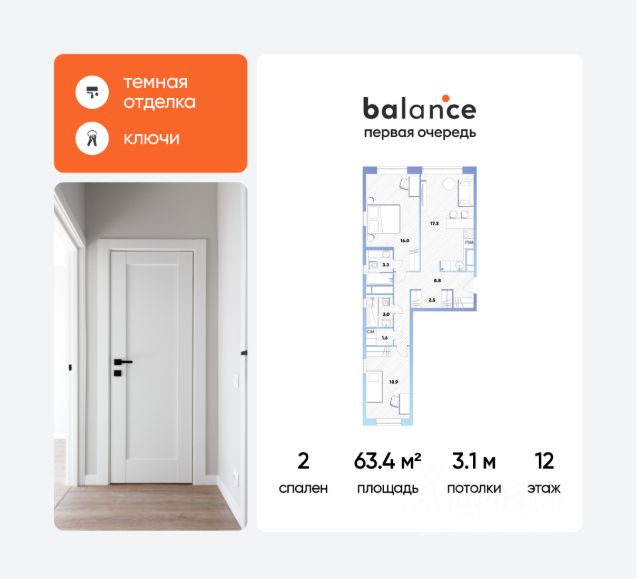 готовая квартира с ключами и ремонтом. продаётся готовая 2-комнатная квартира с увеличенной высотой потолка (3,1 м) на 12 этаже в жк balance balance находится на улице окская, 7 А это ювао, и это круто. вот почему. ювао один из развитых районов москвы, где активно идет редевелопмент: строятся новые кварталы с инфраструктурой и современной архитектурой. путь от 1-ой очереди balance до метро окская займет всего 5 минуты пешком, а до метро рязанский проспект 4 минуты на транспорте. рядом несколько автобусных остановок. за полчаса можно добраться до центра москвы или парков кузьминки, кусково. balance жилой квартал, продуманный до деталей: в каждом корпусе предусмотрено лобби с коворкингом. представь: спускаешься с утра на лифте - и все, больше ехать никуда не надо: выбираешь стол, за которым сегодня работать, подключаешься к вай-фаю - и готово. на первом этаже отдельные помещения для хранения детских колясок и велосипедов. между квартирами светлые холлы. керамогранитный пол, энергоэффективная подсветка и цветовые акценты. никакой монотонности. на территории зеленые супер-дворы со спортивными площадками, детскими зонами и пространством для отдыха. в центре кварталов расположится благоустроенный парк с фонтаном и удобной уличной мебелью. все квартиры 1-ой очереди balance с отделкой. выбрать нужно только цвет — светлый или темный. в комнатах натяжной потолок, ламинат, покрашены стены, установлены светильники, радиаторы, розетки и выключатели. в санузлах керамогранит, сантехника, полотенцесушители. Продам 2-комнатную квартиру рядом с метро Кузьминки.