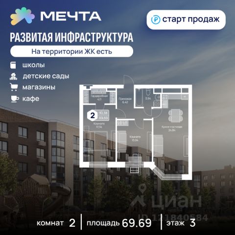 Рассрочка 0% на 2 года от застройщика! Продается двухкомнатная квартира в квартале "Дружба" жилого комплекса "Мечта". Общая площадь квартиры: 59.54 кв. м, этаж 5 из 5. Заселение: 4 квартал 2026 г. Отделка: Базовая Жилой комплекс "Мечта" расположен в 23 км от МКАД по Дмитровскому или Ленинградскому шоссе. ТРАНСПОРТНАЯ ДОСТУПНОСТЬ: - 15-20 минут на общественном транспорте до МЦД-1 "Лобня" - 30-35 минут на общественном транспорте до метро "Физтех" - 45-50 минут до станций метро "Савеловская" или "Белорусская" - 30 минут на автомобиле до Москвы Квартал "Дружба" состоит из пяти пятиэтажных домов с несколькими подъездами. Каждый дом оборудован широкими окнами, которые обеспечивают максимальный доступ естественного света и открывают прекрасный вид на окружающую природу. Квартал отличается большими застеклёнными лоджиями, которые позволяют наслаждаться свежим воздухом и красивым видом, не покидая своего жилища. Инфраструктура включает в себя муниципальную школу и детские сады, кабинет врача общей практики, множество кафе и ресторанов, а также различные спортивные и детские площадки. В пешей доступности от жилого комплекса расположены лес и три реликтовых озера — Долгое, Круглое и Нерское, а также реки Альба, Уча и Волгуша. Территория жилого комплекса закрыта для посторонних, находится под охраной и патрулируется. На въезде расположен КПП. Камеры видеонаблюдения работают круглосуточно на всей территории. Вы и ваши дети будете чувствовать себя в безопасности. Продам 2-комнатную квартиру рядом с метро Лобня.