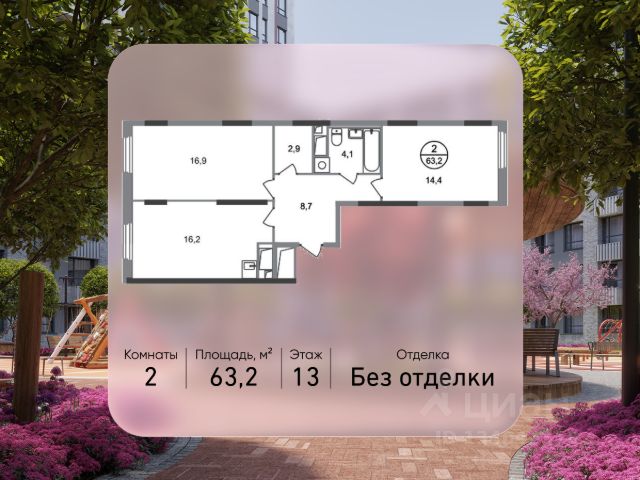 Продается двухкомнатная квартира в городе-парке "Переделкино Ближнее". Общая площадь квартиры - 57,1 кв. м, этаж 7 из 17. Срок сдачи - 1 квартал 2028 года. Тип дома - монолитный. ТОЛЬКО ДО 31 МАРТА выгодные условия на приобретение квартиры в ипотеку или рассрочку. Звоните - и мы подберем оптимальное предложение под ваш запрос! Корпус расположен в 13 фазе строительства и состоит из 8 секций с переменной этажностью 12-17 этажей. Все секции без отделки. Около 13 фазы запланировано строительство многоуровневого паркинга на 300 м/мест. 13 фаза имеет уникальное расположение и находится непосредственно на берегу Федосьинского пруда, который является сердцем города-парка "Переделкино Ближнее". Город-парк "Переделкино Ближнее" расположен в 8 км от МКАД по Боровскому шоссе. ТРАНСПОРТНАЯ ДОСТУПНОСТЬ: - 15 минут пешком до станции МЦД-4 "Мичуринец" - 25 минут пешком до станции метро "Рассказовка" Солнцевской линии - 30 минут до центра Москвы - 2026 г. - открытие трассы Солнцево-Бутово-Варшавское шоссе РАЗВИТАЯ СОЦИАЛЬНАЯ ИНФРАСТРУКТУРА: - 7 детских садов, 3 школы - банки, продуктовые магазины, аптеки, фитнес центры, салоны красоты и пр БЛАГОУСТРОЙСТВО: - дворы без машин - игровые зоны и развивающие детские площадки - зоны для созерцательного и медитативного отдыха - зоны для занятий спортом ОСОБЕННОСТИ АРХИТЕКТУРЫ: - высокие потолки от 3,03 м - безбарьерные входные группы - колясочные в каждой входной группе - кладовые помещения расположены на -1 этаже каждой секции - в каждой секции 2 лифта: 1 пассажирский, 1 грузовой - на фасаде предусмотрены корзины для установки кондиционеров АВТОРСКИЙ ДИЗАЙН: Входные группы выполнены по авторскому дизайну, благодаря панорамному остеклению наполнены естественным светом. В каждой входной группе будет располагаться комфортабельная зона ожидания с возможностью зарядить электронные устройства, почтовые ящики, колясочная, акцентные пуфы и столик.
