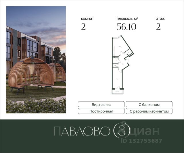 Продается 2-комнатная квартира в новом клубном жилом комплексе "Павлово 3" площадью - 53.20 кв. м, на 2 этаже, в корпусе 2 в малоэтажном монолитном доме от компании-застройщика. Квартира с угловым остеклением. Из окон, а также с балкона, открывается отличный вид. В квартире предусмотрен отдельный рабочий кабинет. В квартире высокие потолки 3.25 м, что дает ощущение простора. Преимуществом также является большой санузел. "Павлово 3" - премиальный уровень комфорта загородной жизни в бизнес-классе. Выбирайте камерный квартал, он станет лучшим домом для каждого, кто ценит приватность и комфорт. Срок сдачи - 2 квартал 2027. Более подробная информация по телефону. Особенности комплекса: • Высота потолков в каждой квартире - от 3 метров; • Собственный детский сад; • Авторская концепция озеленения; • МЦД-2 "Нахабино" в 5 минутах езды; • Садовое кольцо в 35 минутах езды • Локация с насыщенной инфраструктурой столичного уровня: торговые центры, кафе, рестораны, учебные заведения, развлекательные и спортивные объекты. Расположение Клубный жилой комплекс бизнес-класса "Павлово 3" возводится в экологически чистом районе престижного северо-западного направления Москвы. Здесь природа и атмосфера спокойствия соседствуют с комфортом современного мегаполиса. 7 трехэтажных корпусов, выполненных в едином современном стиле, формируют уютную камерную атмосферу. Архитектура На первых этажах домов - просторные и функциональные входные группы, где предусмотрено все: мягкий интерьер в природных тонах, дизайнерская отделка натуральным деревом и камнем, панорамные окна с видом на лес, помещения для хранения колясок и спортивного инвентаря, а также специальные подъемники для маломобильных жителей. Благоустройство "Павлово 3" - это 6 га приватной охраняемой территории, 2 км прогулочных дорожек вдоль леса, 19 зон для тихого и активного отдыха и 3963 деревьев и цветущих кустарников, высаженных непосредственно на территории комплекса. Чтобы оказаться наедине с природой теперь достаточно пары минут пешком. Для жителей "Павлово 3" создан собственный выход в лес, благоустроены лаунж-зоны на свежем воздухе и гармонично вписаны в ландшафт ливневые сады. Здесь же появится барбекю-зона для уютных вечеров в кругу семьи и друзей. Инфраструктура Жителям доступна инфраструктура престижного района с известными ресторанами, спортивными клубами и рейтинговыми учебными заведениями. На территории клубного дома детям не придется скучать. В их распоряжении - 16 игровых площадок с инвентарем из природных безопасных материалов. А для поддержания здорового образа жизни предусмотрено 5 спортивных зон, включая воркаут-тренажеры, корты для мини-футбола, волейбола, падел-тенниса и баскетбола. Для гостей предусмотрен свой паркинг, а для владельцев электромобилей - зарядные станции. Количество машиномест равно количеству квартир. Вся территория оснащена системами безопасности и камерами видеонаблюдения, работает WI-FI. Продается 2-комнатная квартира рядом с метро Нахабино.
