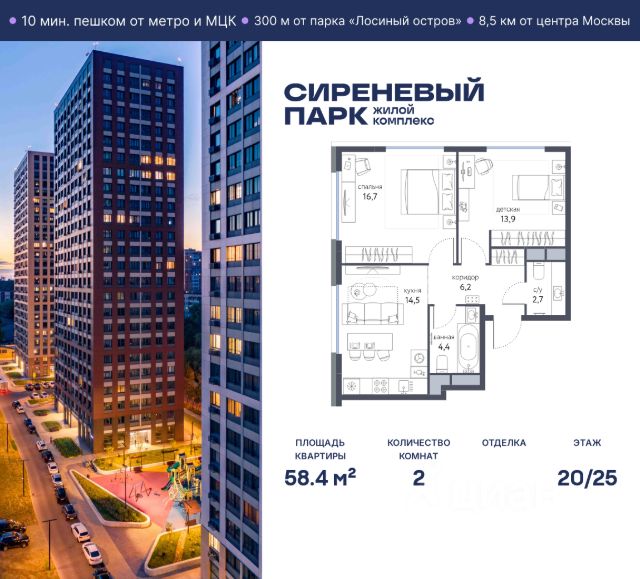 Продаётся просторная 2-комнатная квартира общей площадью 38.7 м² на 14 этаже в новом жилом комплексе "Сиреневый парк", расположенном в Восточном административном округе Москвы на улице Тагильская. Всего 10 минут ходьбы от станции метро "Бульвар Рокоссовского" и одноимённой платформы МЦК. Высококачественное монолитное строительство гарантирует сохранение тепла в доме, а наличие квартир с предчистовой и чистовой отделкой позволяет вам сэкономить время и сразу же переехать в свое жилье после покупки. Благодаря разнообразию планировок вы сможете выбрать идеальный вариант, соответствующий вашим предпочтениям и образу жизни. Предлагаются квартиры: - с просторными кухнями-гостиными, - с нишами для хранения вещей и отдельными гардеробными, - мастер-спальни с собственными санузлами, - большие комнаты с высокими потолками (2,9 м) и с увеличенными безопасными окнами (1,95 м) , которые наполнят ваш дом естественным светом; - с чистовой отделкой по двум дизайн-проектам на выбор; - с остекленными лоджиями и панорамными видами на лес. Каждая деталь в этом доме создана для вашего комфорта: - безбарьерная среда, - бесшумные скоростные лифты, - машиноместа в отапливаемом подземном паркинге и кладовые на -1 этаже с доступом из лифта, - развитая инфраструктура с супермаркетами, кафе, фитнес-клубами, салонами красоты и частным детским садом обеспечивает максимальное удобство жителям. В 300 метрах от ЖК расположен Национальный парк "Лосиный остров". Способы покупки: 100%, Рассрочка 0% от застройщика, Trade-in, Семейная ипотека без наценки, стандартная ипотека. Запишитесь на просмотр в офис продаж и получите свою персональную скидку по акции Назови свою скидку. ЖК "Сиреневый парк" — гармония в деталях, совершенство в каждом моменте. Застройщик проекта - AFI Development. 2-комнатная квартира рядом с метро Партизанская.