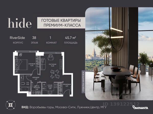 Квартира с двумя спальнями 102,6 м² и террасой 54 м² общей площадью 119 м² (терраса учтена с понижающим коэффициентом 0,3 ) в комплексе премиум-класса Victory Park Residences рядом с Парком Победы. Квартира с готовой дизайнерской отделкой от застройщика в стиле "неофактура" расположена на первом этаже в корпусе 7. Окна выходят на две стороны, с видом в Victory Garden.