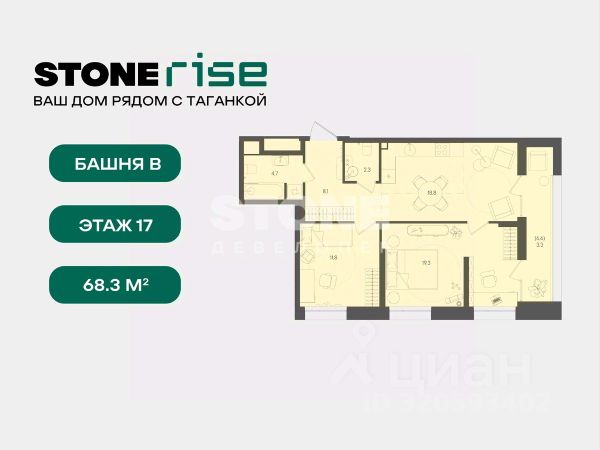 Старт продаж квартир в ЖК бизнес+ класса от девелопера STONE В продаже функциональная и светлая двуспальная квартира с кухней-гостиной, балконом и двумя спальнями для реализации любого дизайн-решения, идеально подходящая молодым парам, которые только планируют пополнение, а также небольшим семьям, где малыш уже подрастает. Квартира расположена в камерном низкоэтажном жилом комплексе бизнес+ в одной станции от кольца. STONE Rise находится в уникальной точке с быстрым доступом ко всем ключевым локациям Москвы. Жилой комплекс располагается на границе Таганского района в одной станции от Кольцевой линии метро и в 8 минутах от Садового кольца. Близость к ЦАО обеспечивает выезды на основные магистрали. В 3 минутах от комплекса располагается новый ТПУ Серп Молот, которые объединяет 2 линии метро и МЦД. - 3 мин. м. "Римская", "Площадь Ильича" - 3 мин ТПУ "Серп и Молот", МЦД-2, МЦД-4 - 2 станции на метро до ГЭС-2 и Третьяковки, до Чистых прудов и Сретенского бульвара по салатовой - 10 минут пешком до набережной Яузы и 20 минут до трех разных парков Архитектура Архитектурный проект разработан московским бюро WALL, известным работой над премиальными жилыми и офисными зданиями. Фасады домов выполнены из бетонной плитки серого и лого м изумрудного оттенков, а также металлических кассет. Вход в комплекс осуществляется через единое гранд-лобби. Здесь будут расположены кофейня, почты с локерами, а также комфортная гостиная с мягкой мебелью. В каждом корпусе расположены лаунж-зоны с естественным освещением в зоне лифтов. Благоустройство Территория комплекса полностью закрыта для машин и случайных посетителей. В центре - прогулочная аллея с дизайнерским освещением и местами для отдыха. В комплексе также обустроена площадка для выгула собак. Маршруты движения внутри двора продуманы для удобства пеших прогулок. Инфраструктура жилого комплекса На первых этажах комплекса расположены кафе, магазины, фитнес-студия и другие сервисные объекты. Двухуровневый подземный паркинг с возможностью выбора стандартных, увеличенных или семейных мест. Для удобства жителей предусмотрены лапомойки, келлеры, места для временного хранения велосипедов и самокатов. В STONE Rise также спроектировано многоуровневое пространство для жителей: - Бизнес-гостиная и детская-игровая, многофункциональное цифровое пространство - Благоустроенная общественная терраса с панорамными видами Девелопер STONE - девелопер коммерческой и жилой недвижимости классов бизнес и премиум в Москве с 18-летним опытом. С 2022 года занимает лидирующую позицию на офисном рынке (рейтинг РБК). Сегодня в портфеле девелопера представлено 2,5 млн кв. м построенных, строящихся и проектируемых объектов, из которых более 850 тыс. кв. м находятся в стадии строительства. Компания имеет самый масштабный проектный портфель офисной недвижимости класса А на московском рынке (данные NF Group) и возглавляет топ-6 устойчивых девелоперов, согласно исследованию FResearch - Forbes. ID.22726 Продам 2-комнатную квартиру рядом с метро Римская.