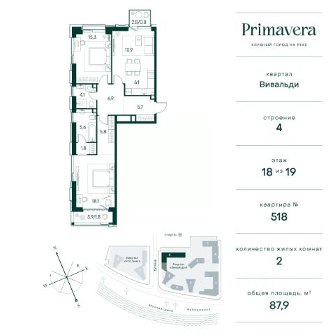 Клубный город на реке Primavera — это респектабельный проект премиум-класса на первой береговой линии Москвы-реки в экологически безупречном районе — Покровское-Стрешнево. Под панорамными окнами квартир расположился собственный экопарк, площадью 12 гектаров с сетью прогулочных дорожек, оборудованный детскими и спортивными площадками, а за ним набережная с собственным пляжем и зонами отдыха. Клубный город на реке Primavera предлагает впечатляющий выбор планировок для любого жизненного сценария: от просторных однокомнатных квартир до пентхаусов и квартир с видовыми террасами или патио. Выбирайте из 120 вариантов эргономичных планировок стандартного и евроформата. В проекте доступны квартиры площадью от 40 до 209 м², в каждой из которых открываются непревзойденные виды на реку, а угол обзора составляет 270 градусов. Из дизайнерских лобби открывается панорамный обзор на зеленый благоустроенный двор. Статусное мебелирование, потолки высотой 6 м и комфортная лаунж-зона отсылают к стилистике высококлассных пятизвездочных отелей. В Primavera есть все, что может предложить мегаполис, здесь все сосредоточено вокруг вас и настроено на ваши желания: - Всестороннее детское развитие в паре шагов от дома: 4 школы, 8 детских садов, развивающие центры с кружками и секциями. - Комфорт мегаполиса на расстоянии приятной прогулки: супермаркеты, кафе, рестораны с верандами на крыше, салоны красоты, аптеки, компании сферы услуг, многофункциональный центр для шоппинга и развлечений. - Умный дом: автоматизированное бесконтактное управление основными системами доступа, инфраструктуры и безопасности через мобильное приложение и специальные метки. Клубный город на реке Primavera выгодно отличается близостью к природе, совмещенной с насыщенной инфраструктурой. Продам 2-комнатную квартиру рядом с метро Тушинская.