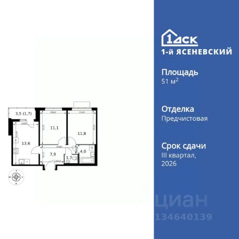 Прямая продажа от застройщика! Жилой Комплекс класса Комфорт Плюс. Продаётся 2-к квартира номер 3 общей площадью 54.9 кв.м. на 2-м этаже 8 этажного здания. Предчистовая отделка. Цена с учётом скидки. Особенности квартиры: - Квартиры рядом с метро - м. Корниловская 9 мин пешком - 63 га лесопарка за окнами - Школа c ИТ-кластером и бассейном. 2 детских сада - Организуем показ в удобное для вас время! - Мастер-зона с гардеробной. Просторное место для отдыха и удобного хранения вещей. - Угловая планировка - больше пространства для ваших идей. - Увеличенное количество окон - дополнительное освещение и свежий воздух. - Гостевой санузел - комфорт и удобство для ваших гостей. - Можно оборудовать рабочее место - комфорт для работы и учёбы. - Гардеробная - удобство для хранения и организации вещей. - Ниша под шкаф - компактное и удобное место для вещей. - Лоджия - уютное место для отдыха и тишины. Квартира с предчистовой отделкой. Вам не придется заниматься черновыми и трудоёмкими работы, а чистовую отделку и дизайн - сделайте на свой вкус. Информация о комплексе: ЖК "1-й Ясеневский": преимущества городской инфраструктуры и природы. Пешая доступность к метро, школе с бассейном и ИТ-кластеру, а также 63 га Троицкого лесопарка под окнами. Закрытая территория с бульварами, велодорожками, кафе и дворами без машин. Фруктовые деревья и городские сады создают уникальную атмосферу. Всего в 1 км от МКАД - идеальный баланс для современной жизни. Транспортная доступность: До метро "Корниловская" - 12 минут пешком До метро "Тютчевская" - 25 минут пешком До метро "Теплый стан" - 10 минут на транспорте До метро "Ольховая" - 30 минут на общественном транспорте Личный автотранспорт: Выезд на Калужское шоссе - 500 м МКАД - 1 км Внутренняя инфраструктура: ЖК "1-й Ясеневский" - идеальное место для семей с детьми. Рядом Троицкий лесопарк для прогулок, а во дворах - современные детские площадки, разработанные с участием психологов. В шаговой доступности два детских сада и школа на 1100 мест с ИТ-кластером, бассейном и классами робототехники. Всё для счастливого детства и успешного будущего. Квартира с предчистовой отделкой - ваш дизайн без черновых работ