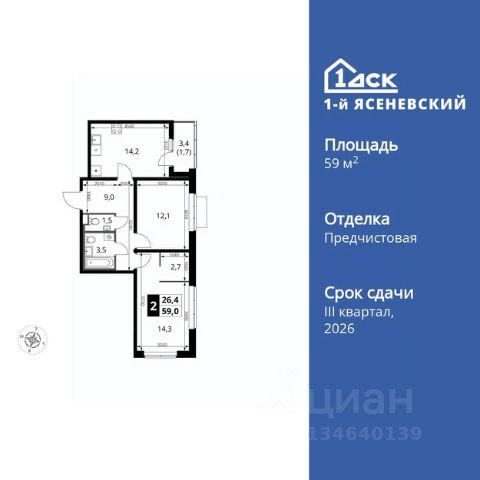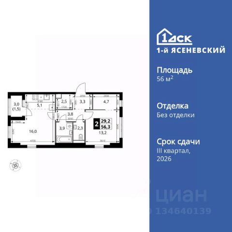 Прямая продажа от застройщика! Жилой Комплекс класса Комфорт Плюс. Продаётся 2-к квартира номер 593 общей площадью 46.9 кв.м. на 17-м этаже 18 этажного здания. Отделка Whitebox. Цена с учётом скидки. Особенности квартиры: - Квартиры рядом с метро - м. Корниловская 9 мин пешком - 63 га лесопарка за окнами - Школа c it-кластером и бассейном. 2 детских сада - Мастер-зона с гардеробной. Просторное место для отдыха и удобного хранения вещей. - Линейная планировка - максимальная функциональность и удобство. - Увеличенное количество окон - дополнительное освещение и свежий воздух. - Раздельный санузел - больше удобства для всех членов семьи. - Евроформат - просторное и удобное жилье с отличной планировкой. - Просторная мягкая зона - комфорт и уют для отдыха всей семьи. - Гардеробная - удобство для хранения и организации вещей. - Лоджия - уютное место для отдыха и тишины. Квартира с предчистовой отделкой (White box). Вам не придется заниматься черновыми и трудоёмкими работы, а чистовую отделку и дизайн - сделайте на свой вкус. Информация о комплексе: В жилом комплексе комфорт-плюс класса "1-го Ясеневского" доступны преимущества двух стилей жизни. Ведь в пешей доступности метро, школа с 25-метровым бассейном и IT-кластером и при этом целых 63 га благоустроенного Троицкого лесопарка под окнами, где так приятно дышать свежим воздухом и слушать пение птиц. Собственная закрытая территория "1-го Ясеневского" представляет собой уютный оазис. Здесь и зеленый освещенный бульвар для прогулок, система велодорожек, маленькая городская площадь, кафе, пекарни и кофе поинты. А еще дворы без машин и многоэтажная парковка. Изюминка территории - фруктовые деревья во дворах и городские сады. "1-й Ясеневский" - всего в 1 км от МКАД, на территории новой Москвы. Жилой комплекс, где есть все необходимое для современного человека. Транспортная доступность: До метро "Корниловская" - 12 минут пешком До метро "Тютчевская" - 25 минут пешком До метро "Теплый стан" - 10 минут на транспорте До метро "Ольховая" - 30 минут на общественном транспорте Личный автотранспорт: Выезд на Калужское шоссе - 500 м МКАД - 1 км Внутренняя инфраструктура: ЖК "1-й Ясеневский" можно назвать идеальным местом для жизни семьи с детьми. Здесь буквально за домом находится Троицкий лесопарк - излюбленное место прогулок молодых родителей. А во внутренних дворах под детские площадки выделены специальные зоны. Они оборудованы всем, что нужно для счастливого детства: современными и максимально безопасными качелями, песочницами и лазалками. Оборудование и игровые сценарии на детских площадках спроектированы вместе с командой детских психологов для правильного развития ребенка и для повышения их интереса. Также рядом с домом два детских садика, один из которых уже построен и школа на 1100 мест. Школу по праву можно назвать образцовым учебным заведением. В ней закладываются основы успешного будущего. Здесь есть класс робототехники, IT-кластер, 25-метровый бассейн и п
