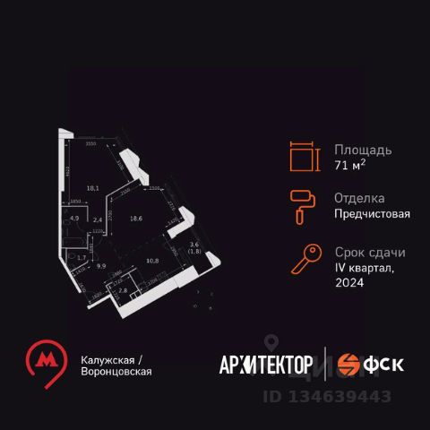 УСПЕЙ ПО СЕМЕЙНОЙ ИПОТЕКЕ БЕЗ НАЦЕНКИ! От 68 000 рублей в месяц! Прямая продажа от застройщика! Жилой Комплекс премиум-класса. Продаётся 2-к квартира номер 1161 общей площадью 68.2 кв.м. на 25-м этаже 47 этажного здания. Отделка Whitebox. Цена с учётом скидки. Особенности квартиры: 50% лотов - Планировка повышенной комфортности - Живите в квартире сейчас, платите потом - Лидер продаж - Двухуровневый двор без машин - Успей купить до повышения - Скоро ключи! 50% лотов - Идеальная планировка - Живите в квартире сейчас, платите потом - Лидер продаж - Двухуровневый двор без машин - Успей купить до отмены скидок - Скоро ключи! - Мастер-зона с санузлом. Уют и комфорт в одном пространстве. - Просторная спальня, в которой можно разместить большую кровать. - Распашная планировка - отличное сочетание удобства и свободы. - Увеличенная ширина окна/окон - больше света и визуального простора. - Угловое остекление - свет и воздушность в каждой комнате. - Гостевой санузел - комфорт и удобство для ваших гостей. - Евроформат - просторное и удобное жилье с отличной планировкой. - Гибкая планировка - создайте пространство по своему вкусу. - Место для игры/занятия спортом - идеальное пространство для активных детей. - Можно оборудовать 2 или более рабочих места - пространство для нескольких человек. - Просторная мягкая зона - комфорт и уют для отдыха всей семьи. - Линейная кухня - функциональность и практичность в одном решении. - Возможность добавить спальное место - дополнительный комфорт для гостей. - Проходная кухня-гостиная - идеальное пространство для общения и готовки. - Гардеробная - удобство для хранения и организации вещей. Квартира с предчистовой отделкой (White box). Вам не придется заниматься черновыми и трудоёмкими работы, а чистовую отделку и дизайн - сделайте на свой вкус. Информация о комплексе: Ощущение уютного дома должно начинаться с подъезда. Мы постарались предусмотреть все нюансы, чтобы наши лифты отвечали самым строгим современным требованиям. Вы всегда сможете увидеть, кто звонит в домофон. В каждой квартире подключен базовый пакет Умная квартира забудьте о беспокойстве о протечке; настройте свои сценарии управления техникой и электричеством; общайтесь сУмной квартирой голосом; Можете легко расширить базовый пакет и подключить дополнительные опции и устройства, чтобы из любой точки мира управляй работой бытовых приборов и систем. Наличие кладовых позволит вам поддерживать идеальный порядок и уют в вашей квартире! Под башнями расположился трехуровневый паркинг на 670 машино-мест с прямым доступом из квартир любого подъезда. По периметру паркинга предусмотрена гостевая парковка на 30 мест. Транспортная доступность: До метро "Калужская" - 12 минут пешком, 14 минут (7 км) до ТТК, 9 минут (6 км) до МКАД, 18 минут (11 км) до Садового кольца. В шаговой доступности до Воронцовского парка Внутренняя инфраструктура: В ЖК продуманная, богатая инфраструктура из трех зон. В основной входной группе сконц