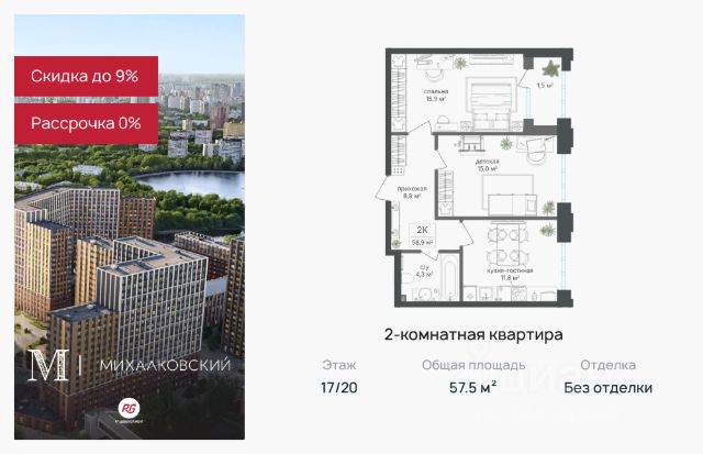 В продаже 2-к квартира площадью 70.4 м2. Функциональная планировка, кухня-гостиная, просторные санузел и гардеробная. Квартира расположена на 14-м этаже 24-этажного дома. Стоимость указана с учетом скидки 10%, экономия составит 3 774 144 рублей! Стоимость квартиры без скидки 37 741 440 рублей. Условия покупки со скидкой 10%: - 100% оплата - Базовая ипотека Условия покупки без скидки: - Семейная ипотека от 3,5% на весь срок - Ипотека 0,11% на первый год - Рассрочка без процентов - Trade-in с проживанием на время строительства дома "Мангазея на Речном" расположена рядом с набережной, парками и территорией Северного речного вокзала. Первая очередь проекта два дома 12 и 24 этажа с приватным двором, ландшафтным благоустройством и инфраструктурой только для резидентов: кинозал, коворкинг, переговорные, зоны отдыха и комнаты для занятия фитнесом. Инфраструктура: - Школа на 1000 мест и детский сад - Дом Wellness со СПА-центром, фитнесом и массажными кабинетами и два бассейна, один из них под открытым небом - Два бассейна, один из них под открытым небом - Прогулочная набережная протяженностью 3,2 км с террасами - Зона воркаута и детские площадки - Ретейл, кафе, рестораны и бутики на первых этажах - Причалы для остановки яхт и небольших катеров Транспортная доступность: - 10 минут пешком до м. Речной вокзал - 15 минут пешком до м. Беломорская - 15 минут на машине до Белорусского вокзала - 17 минут на машине до Садового Кольца В первых корпусах "Мангазеи на Речном" представлены квартиры бизнес-класса с мастер-спальнями, террасами и видами на парк. Эксклюзивные форматы лоты с увеличенной высотой потолков и собственными выходом на благоустроенную территорию. Купить 2-комнатную квартиру рядом с метро Водный стадион.