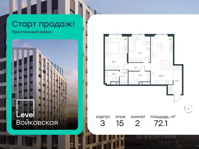 Прямая продажа от застройщика. В жилом квартале, расположенном в Войковском районе Москвы, продаётся 2-комнатная квартира площадью 73.9 кв.м без отделки. Квартира расположена на 2 этаже 35-этажного дома, корпус 1, в жилом квартале бизнес-класса INJOY. INJOY отделен от Ленинградского шоссе исторической застройкой и расположен всего в одном километре от магистрали: это возможность быстро добраться до центра или в любой район города по МКАДу или ТТК. Для автомобилей в INJOY — удобный подземный паркинг с доступом на лифте. Здесь же расположены кладовые площадью от 2,1 до 9 кв. м. Усилители сотового сигнала в лифтах и паркинге позволяют вести важные разговоры, не прерываясь на полуслове. Десятки мест отдыха вокруг INJOY дарят детям и взрослым запоминающиеся развлечения в любую погоду: от прогулок по паркам и природным зонам до интересного досуга в кругу семьи или друзей. 10 минут до парка Покровское-Стрешнево 12 минут до усадьбы Михалково 15 минут до Химкинского водохранилища 7 минут до ТРЦ "Метрополис" INJOY расположен в развитом сформировавшемся районе, что обеспечивает жителям обширную инфраструктуру в пешей доступности. МЦК "Балтийская" - 200 м Ленинградское шоссе - 1 км м. Войковская - 1 км ТТК - 7 км В проекте INJOY три очереди, разновидность которых формирует силуэт живого мегаполиса. Архитекторы международного бюро AI Studio придали индивидуальность каждому корпусу, чтобы все уголки INJOY обрели особенный характер. Планировки и форматы квартир уникальны: пентхаусы, квартиры с террасами, мастер-спальнями, выходом на променад, угловым остеклением, лоджиями, гардеробными, кладовыми и постирочными. Внутренний двор INJOY продолжает общую концепцию благоустройства и включает в себя: три детские площадки для разных возрастов, зону work-out, природную озеленённую зону, променад с зонами для релакса, йоги и амфитеатром с арт-объектами. Закрытый двор, видеонаблюдение и контроль доступа обеспечивают безопасность каждому жителю комплекса. Стоимость квартиры - 26568000 Р. Срок сдачи - 1 квартал 2027. Более подробную информацию по объекту уточняйте по телефону и в отделе продаж. 2-комнатная квартира рядом с метро Войковская.