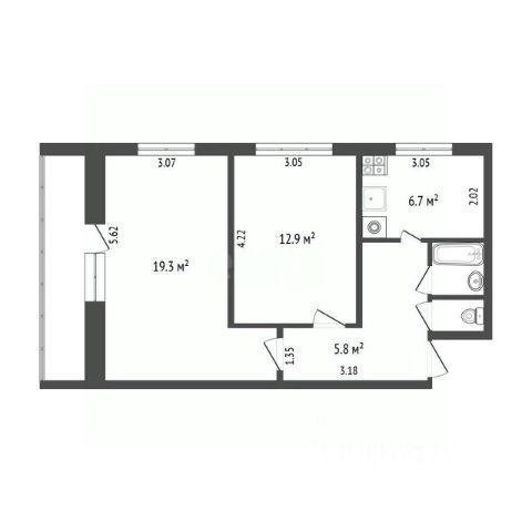 Квартира: в хорошем состоянии, общей площадью: 48 кв.м., кухня: 6.7 кв.м., комнаты изолированные: 19.4 и 14.1 кв.м., санузел раздельный, прихожая, высота потолков 2.65 м, встроенная кухня, полы-паркет, просторная застекленная лоджия, стеклопакеты, вид на улицу.