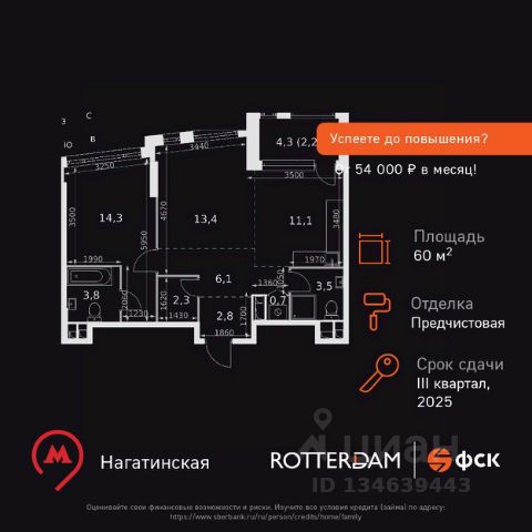 Продаётся просторная 2-комнатная квартира площадью 61,3 м², расположенная на 23 этаже корпуса 2.1 — идеальный выбор для тех, кто ценит эстетику высоты, панорамы города и современный премиум-класс. С декабря 2025 года совместно со Сбер действует ипотечная программа с фиксированной ставкой 13,9% на весь срок кредитования. Также доступна программа рассрочки с комфортными фиксированными платежами от 60 000 рублей до октября 2028 года. Подробности — у менеджеров отдела продаж в онлайн-чате справа. Первый Нагатинский — самый крупный жилой квартал в локации, формирующий новый облик района и задающий стандарты городского премиум-класса. Проект сочетает продуманную архитектуру, премиальные общественные пространства и масштабную инфраструктуру, создавая среду, где вдохновение и удобство встречаются ежедневно. Транспортная доступность Находится в сердце Южного округа Москвы — районе с уже сложившейся и богатой инфраструктурой. Внешняя среда проекта усиливает комфорт жизни: рядом расположены зелёные парки, современные спортивные объекты, торговые центры и престижные образовательные учреждения. м. Нагатинская ~ 3 мин. МЦК Верхние котлы ~ 5 мин. Речной причал ~ 15 мин. ТТК ~ 10 мин. Садовое кольцо ~ 15 мин. Благоустройство премиального уровня Ландшафтные архитекторы бюро А4 создали систему взаимосвязанных пространств для отдыха, прогулок и гармонии. Уникальная wellness-зона вписана в природный ритм Москвы и формирует атмосферу спокойствия. • 10 000 зелёных насаждений • Японский сад • Зона у огня с биокамином • Зона у воды • Арт-тропа "Променад" • Воркаут-площадка • Гамаки для отдыха • Нетворкинг под открытым небом Инфраструктура нового поколения Квартал формирует современный формат городской жизни, объединяя приватность, удобство и пространство для развития. Всё расположено внутри проекта — без необходимости покидать территорию. • Скай-бар на 28 этаже • Гурме-вилла • Приватный СПА и фитнес премиум-класса • Тренажёрный зал и студии групповых тренировок • Хамам и финская сауна • Коворкинг-клуб • Клубный лаундж • Кинотеатр и сигарная комната • Музыкальная студия • Арт-зал с подиумом • Детские комнаты, игровые зоны и творческие студии • Круглогодичные детские площадки • Пляжный клуб на берегу Москвы-реки Образовательный кластер внутри квартала Внутри квартала созданы пространства для образования, творчества и игр, где дети могут развиваться, раскрывать таланты и чувствовать себя в безопасности — не покидая территории своего дома. Школа нового поколения на 1000 учеников Лучший детский сад в Москве с бассейном Тематическая детская площадка Гора Фудзияма и Большая волна Купить 2-комнатную квартиру в районе Нагатино-Садовники в Москве.
