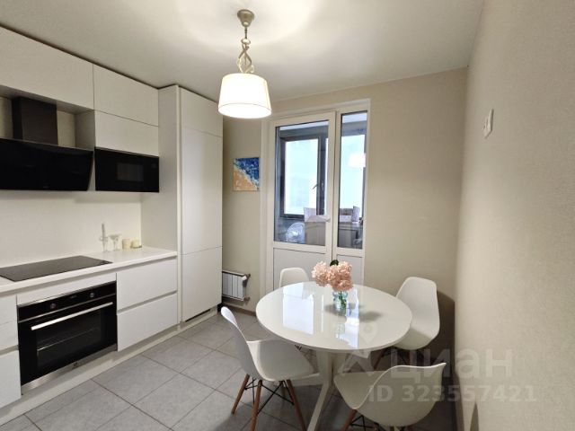 Стильная кухня с современным гарнитуром оснащена качественной бытовой техникой: индукционная варочная панель Ariston, вытяжной зонт, микроволновая печь Siemens, посудомоечная машина Bosch, холодильник Haier — всё перейдёт новым владельцам. Дополнительно установлен кондиционер Panasonic. Лоджия застеклена — идеальное место для отдыха или хранения.
