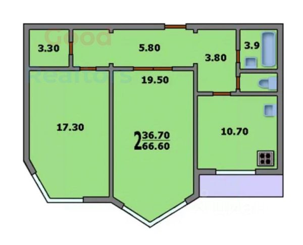 2-комн. кв., 43,3 кв.м -------------------- Продажа квартира, Партизанская улица, дом 49, корпус 2, Этаж 2, кв. 28 --------------------