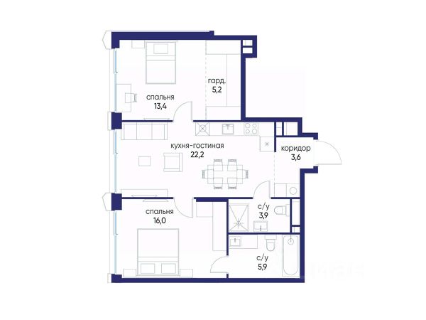Продается ВИДОВАЯ квартира Евро-4 — 123,1 м² в готовом доме ПРЕМИУМ КЛАССА в ЖК ОСТРОВ 4. Полная цена в ДОГОВОРЕ