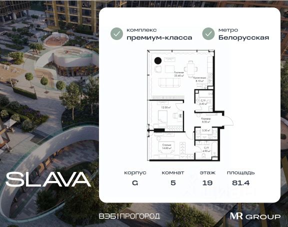 Квартиры премиум-класса в жилом комплексе SLAVA у м. "Белорусская" от застройщика. В продаже 2-к квартира площадью 62 м² на 8-м этаже корпуса G. Новый современный жилой комплекс премиум-класса SLAVA расположен в той части центра, где традиция соединяется с прогрессивными городскими тенденциями. Здесь историческая Москва встречается с передовым миром. Популярные театры и старинные церкви соседствуют с современным деловым кварталом и гастрономическим кластером Депо. SLAVA находится всего в 5 мин. пешком от м. "Белорусская", по-новому открывая Ленинградский проспект. Проект был разработан легендарным архитектором Хельмутом Яном, основателем чикагского архитектурного бюро Jahn. Его работы отмечены множеством наград и реализованы в мегаполисах по всему миру. По замыслу архитекторов, жилой комплекс образуют четыре высотные башни, соединенные одноэтажным стилобатом "Хронограф". Здесь, на первом уровне, открытые и закрытые общественные пространства: небольшие сады, места для встреч и отдыха, кафе, рестораны, магазины, спортивный центр и даже выставочное пространство. Важнейшей особенностью пространства является его всесезонность: благодаря правильной организации, ландшафтному дизайну, инженерной инфраструктуре здесь будет уютно и в жару, и в xолод, и в ненастье. На втором уровне стилобата расположится приватный парк для жильцов. Особенности комплекса: - Идеальное расположение в престижной части Москвы (10 мин. от Кремля) - Панорамное остекление - Подземный паркинг с дизайнерской отделкой - Современные инженерные системы - Продуманная внутренняя инфраструктура - Приватный сад 7700 кв.м. Расположение комплекса: - 5 минут до станции метро "Белорусская" - 3 минуты до ТТК - 8 минут до "Садового кольца" Компания MR Group предлагает своим клиентам специальные условия приобретения квартир в рамках программ ипотечного кредитования от банков-партнеров.