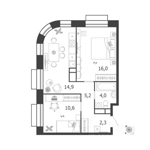 Продается квартира 16, по адресу г. Москва, внутригородское муниципальное образование Даниловское, ул. Автозаводская, вл. 23/74, корпус Жилой квартал Shagal, 3 очередь, 2 этап, корпус 1 в Shagal на 3 этаже, с площадью 56.6 м2.