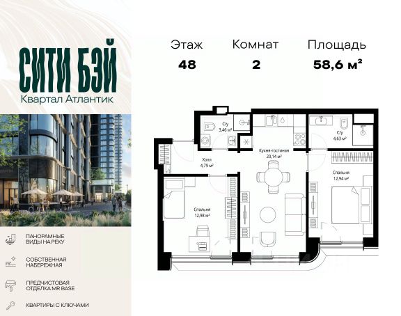 Прямая продажа от застройщика. Продаётся 2-комнатная квартира общей площадью 51.67 м² с предчистовой отделкой в ЖК Сити Бэй на 8-м этаже 53 этажного дома. Концепция жилого комплекса Сити Бэй - настоящий город в городе с отлично развитой инфраструктурой и собственной благоустроенной набережной. На территории жилого комплекса расположено пять кварталов - Атлантик, Пасифик, Индиан, Норс, Клиф. Жилой квартал Сити Бэй отличается оригинальной концепцией и выделяется среди других проектов такими характеристиками как: - Архитектура, - Виды из окон, - Природное окружение, вызывая гордость у жителей и восхищение у прохожих. Вся жизнь района Покровское-Стрешнево строится вокруг водных объектов: - Пойма реки Сходни с уникальной экосистемой, - Речка Химка и Химкинское водохранилище, - Москва-река, - Канал имени Москвы. Кругом вода, и местные с удовольствием этим пользуются. А сразу за рекой - центр водного спорта в Строгино с вейк-парком и яхт-клубами. Помимо воды, здесь очень много зелени: - Рядом Сходненский ковш памятник природы, естественный амфитеатр глубиной 40 метров; - Парк при усадьбе Братцево с фруктовым садом; - Дубовая роща "Маяк", - Алешкинский лес; - Лесопарк Покровское-Стрешнево с пляжами и бобрами. Главные транспортные артерии района: - Волоколамское шоссе, - Таганско-Краснопресненская линия метро и МЦД-2. Всего за 20 минут можно добраться до центра на машине или метро, а МЦД связывает ЖК Сити Бэй с северными, восточными и юго-восточными районами. Компания MR предлагает своим клиентам специальные условия приобретения квартир в рамках программ ипотечного кредитования от банков-партнеров.