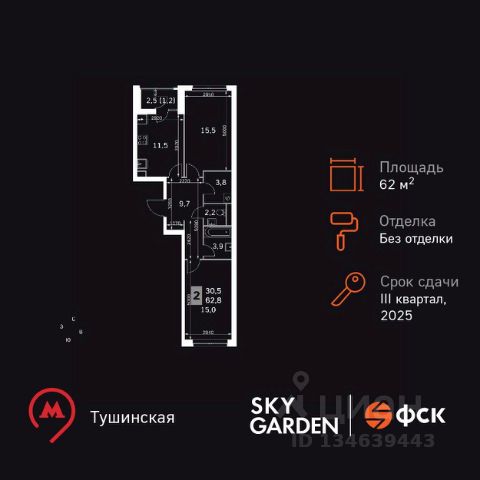 Прямая продажа от застройщика! Жилой Комплекс бизнес-класса. Продаётся 2-к квартира номер 307 общей площадью 62.8 кв.м. на 5-м этаже 26 этажного здания. Без отделки. Цена с учётом скидки. Особенности квартиры: - Распашная планировка - отличное сочетание удобства и свободы. - Увеличенная ширина окна/окон - больше света и визуального простора. - Постирочная - организуйте пространство для стирки и сушки вещей. - Раздельный санузел - больше удобства для всех членов семьи. - Гибкая планировка - создайте пространство по своему вкусу. - Место для игры/занятия спортом - идеальное пространство для активных детей. - Можно оборудовать 2 или более рабочих места - пространство для нескольких человек. - Можно оборудовать рабочее место - комфорт для работы и учёбы. - Просторная мягкая зона - комфорт и уют для отдыха всей семьи. - Линейная кухня - функциональность и практичность в одном решении. - Ниша под шкаф - компактное и удобное место для вещей. - Лоджия - уютное место для отдыха и тишины. Информация о комплексе: Sky Garden расположен в районе Покровское-Стрешнево. На территории этого района шумит листвой одноименный парк. Зеленый живописный район, реки и каналы поблизости, чистый свежий воздух из подмосковных листов - идеальное место, чтобы ощутить себя частью природы. При этом развитая образовательная, социальная и транспортная инфраструктура оставят вам все преимущества жизни в мегаполисе. Sky Garden - идеальный баланс между природной и городской средой. Транспортная доступность: Всего в 12 минутах пешком до м. Тушинская и 15 минутах до станции Тушинская МЦД. На автомобиле: 2 км до Волоколамского шоссе, 2,5 км до МКАД и 15 км до Садового кольца Внутренняя инфраструктура: К вашим услугам современные игровые площадки: тут ваши дети с удовольствием смогут лазить по бревнам, штурмовать горки и стараться не промокнуть, бегая под струями фонтана. В Sky Garden полно возможностей как для совсем маленьких, так и для взрослых. Предусмотрены активности: мастер классы по йоге на английском газоне, воркаут- площадка, велопарковки. Также в вашем распоряжении на территории комплекса будут: поликлиника, аптека, супермаркет, зона для отдыха, сухой фонтан и площадка для подростков. Пространство для работы, оборудованное кофепоинтом и удобными переговорными. Также к вашим услугам кафе и рестораны в коммерческом кластере. Игровая комната, расположенная в центральном лобби, оборудована двухэтажным комплексом, мягкими татами, книжками и играми, способными увлечь ребятню В каждом подъезде на минус первом этаже оборудованы комнаты для хранения взрослых и детских велосипедов, колясок и самокатов Вкуснейшая горячая выпечка, ресторан с любимыми блюдами, надежная мастерская по ремонту обуви, художественная или спортивная секция для ребенка, фитнес или йога для вас, а также всё, что вам нужно для повседневной жизни - есть в нескольких минутах от вашего подъезда Внутри проекта расположена парковая территория площадью 3,5 га с игровыми и спо Купить 2-комнатную квартиру на проезде Строительный в Москве.