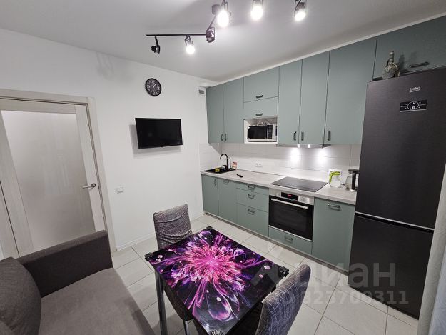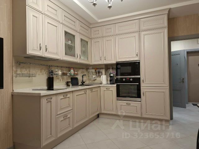 Просторная кухня оборудована стильным кухонным гарнитуром шведского производства под потолок и полностью у комплектована современной импортной бытовой встроенной техникой (холодильник/ морозильник