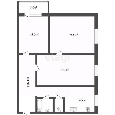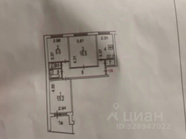 Общая площадь 53 м², 9/16 этаж, серия П43, потолки 2,75 м.