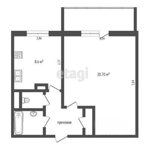 Кухня 9 м² с выходом на лоджию, удобная для нормальной обеденной зоны и хранения.