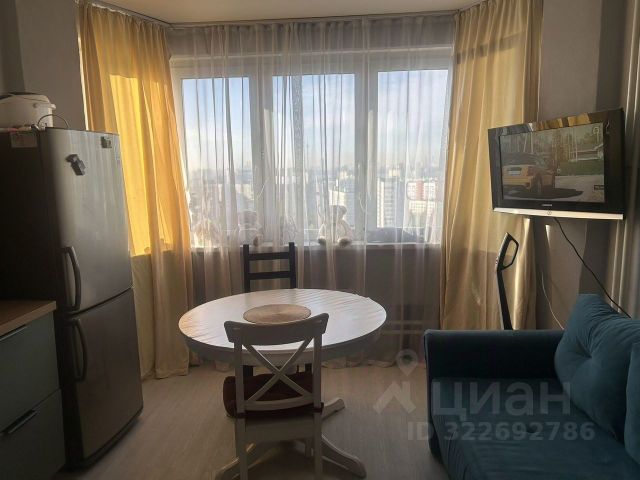 Квартира расположена на 1-м этаже 17-ти этажного дома, серия П44Т. Общая площадь 58 кв.м. с учётом лоджий. Площадь комнаты 18,9 кв.м., кухня 9,6 кв.м. + столовая 8,7 кв.м., санузел 6,7 кв.м., коридор 7,3 кв.м.