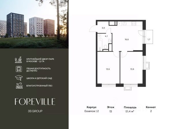 Предчистовая отделка в подарок! Пешая доступность от метро и московская прописка! Продается уютная 2-комн. квартира площадью 64,3 кв.м на 8 этаже 17 этажного жилого комплекса бизнес-класса Foreville от 3S Group. Общая площадь: 64,3 кв.м., жилая: 39,8 кв.м., площадь кухни-гостиной: 22,3 кв.м., высота потолков: 2,72 м., окна выходят во двор и на улицу. Квартира предлагается без отделки, что идеально подходит для воплощения собственного дизайнерского решения. Также доступна опция предчистовой отделки, стоимость которой включается в общую цену квартиры. О проекте: Пространство Комплекс располагает крупнейшим приватным двор-парком в Новой Москве площадью 1,2 Га, предлагая жителям огромное пространство для отдыха, спорта и игр на свежем воздухе. Природный ландшафт Внутренний лесопарк с более чем 183 взрослыми деревьями и 10 320 цветущими кустарниками создает уникальную природную атмосферу для каждого времени года. Игровые и спортивные зоны Обширные площадки с безопасным покрытием, специализированные зоны для детей разных возрастных групп и взрослых, включая воркаут и настольный теннис, способствуют активному и здоровому образу жизни. Экологичность и долговечность Использование натуральных материалов, таких как лиственница, и крупноформатной бетонной плитки для покрытия, подчеркивает стремление проекта к экологичности и устойчивости. Безопасность и уединение Внутренний двор без машин обеспечивает безопасность для детей и спокойствие для взрослых. Территория огорожена и находится под круглосуточным видеонаблюдением. Сохранение времени Благодаря превосходной транспортной доступности и близости к новой станции метро Корниловская, Foreville позволяет жителям экономить время для семьи и отдыха на природе, минимизируя необходимость длительных поездок. Foreville не просто жилье, а целая экосистема для комфортной и гармоничной жизни на свежем воздухе, совмещая преимущества городской инфраструктуры и непосредственную близость к природе.