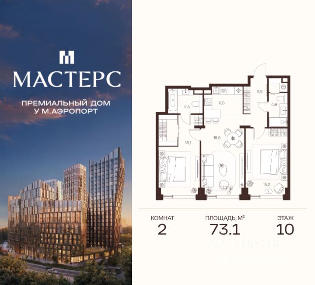 МАСТЕРС — премиальный дом в престижной северной части Москвы, всего в 15 минутах езды от Кремля. Непосредственная близость к метро "Аэропорт" обеспечивает превосходную транспортную доступность. Это идеальный баланс приватности, природы и динамики столицы. Приватный двор: атмосфера загородного отеля Приватный двор — продолжение жилого пространства с атмосферой роскошного загородного отеля. Натуральные материалы, всесезонный сад из более чем 600 деревьев и кустарников. Во дворе — авторская мебель индивидуального производства, пергола с водной чашей и развивающая детская площадка. Вечерняя ландшафтная подсветка создаёт неповторимый уют. Линейный парк: природа мастерства Современный парк гармонично сочетает природу и инфраструктуру. Здесь сохранены десятки взрослых деревьев. Для детей — игровые площадки и сенсорные тропы. Для взрослых — места для отдыха и спорта, коворкинг и амфитеатр, а также площадка для йоги и аптекарский огород. Квартиры: мастерство внутри Более 100 вариантов планировочных решений — для максимальной индивидуальности. Угловые форматы квартир и панорамное остекление наполняют пространство светом. Доступны квартиры с мастер-спальнями, террасами, гардеробными и ванными с окном. Лобби: форма вдохновения Двухсветное мастер-лобби площадью 160 м² впечатляет эффектным панорамным остеклением и дизайнерской парадной лестницей. Клубная гостиная трансформируется под разные форматы мероприятий. Для деловых встреч здесь предусмотрены коворкинг и акустическая кабина для звонков. Во всех лобби расположены лаундж-зоны, колясочные, зарядки для самокатов и лапомойки. Паркинг: мастерство в деталях* Двухуровневый паркинг на 363 места и индивидуальные кладовые площадью от 4 до 6 м² для хранения вещей. Инфраструктура для повседневного комфорта включает зарядные станции для электромобилей, мойку колёс и подкачку шин. Продам 2-комнатную квартиру на улице Викторенко в Москве.
