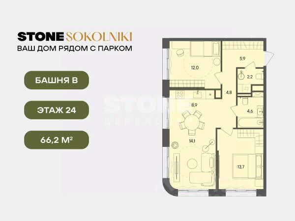 Продается 2-комнатная квартира в ЖК "НАЗАРЕ'" Общая площадь - 57.80 Тип дома - монолитный Этаж - 8 Год сдачи - 2028 Предлагается квартира площадью 57.80 кв. м в новом современном квартале на востоке Москвы, прямо у станций метро и МЦК "Бульвар Рокоссовского". Квартира располагается в корпусе 5 на 8 этаже комплекса бизнес-класса "НАЗАРЕ'". Стоимость указана с учетом скидки 20%, ваша выгода составит 5 660 932 рублей! Полная стоимость квартиры без скидки 28 304 660 рублей. Великолепная транспортная доступность: • 2 минуты ходьбы до метро и МЦК "Бульвар Рокоссовского"; • 3 минуты на авто - удобный выезд на СВХ (МСД); • 10 минут на авто до национального парка "Лосиный остров"; • 10 минут на авто до "Измайловского парка"; • 15 минут до авто до парка "Сокольники"; • 15 минут занимает выезд на ТТК, • 18 минут на авто до Садового кольца. Индивидуальная архитектура в современном стиле: • шесть башен переменной высотности от 24 до 43 этажей, в том числе одна высотная 143-метровая доминанта, которая станет достопримечательностью востока Москвы; • авторы архитектурной концепции - знаменитое бюро СПИЧ (среди их работ - башня "Федерация", новое здание Третьяковской галереи, реконструкция БСА "Лужники" и др.); • торгово-развлекательный комплекс с фитнес-центром, детской игровой комнатой и открытыми террасами прямо возле квартала; • дизайнерские лобби от бюро ABOVE ARCHITECTURE с панорамными окнами, интерьерами в теплой цветовой гамме и мягкой зоной ожидания располагаются в каждой башне; • корпуса расположены так, чтобы из окон открывались потрясающие виды на закаты и рассветы, зеленые панорамы или огни мегаполиса; Особенности расположения "НАЗАРЕ'" находится максимально близко к метро, и в то же время проект вписан в уже существующую инфраструктуру зеленого столичного района Богородское. Это обеспечивает быстрый доступ ко всем нужным объектам инфраструктуры (детские сады, школы, медцентры, магазины, салоны красоты, фитнес-клубы, футбольные поля, спортивные школы), а также к живописным зеленым зонам - национальному парку "Лосиный остров", парку "Сокольники", Черкизовскому детскому парку, Измайловскому лесопарку с усадьбой Измайлово. Собственная инфраструктура и благоустройство Шесть башен квартала будут объединены цокольным этажом, в который можно попасть как с улицы, так и со стороны лобби. Здесь разместятся необходимые для комфортной повседневной жизни кофейни, супермаркет, рестораны, магазины и многое другое. В комплексе предусмотрен вместительный двухуровневый подземный паркинг с келлерами для хранения сезонных вещей. Во дворе комплекса "НАЗАРЕ'" будут места как для спокойного отдыха и работы, так и для игр и спорта. Здесь организованы игровые площадки для детей всех возврастов, места для стритбола и тенниса, а также зона с природным ландшафтом и коворкинг с экологичной деревянной мебелью. Продается 2-комнатная квартира в округе ВАО в Москве.