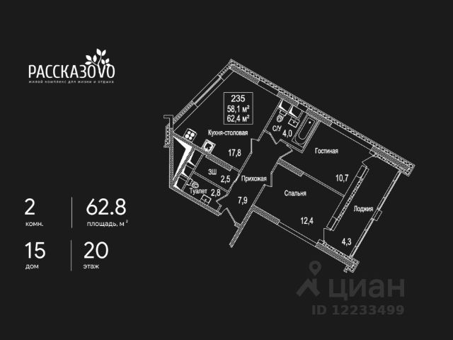 Продается 2-комнатная квартира в ЖК Рассказово на 17 этаже. Общая площадь квартиры составляет 49,5 кв.м. Квартира без отделки. Уникальность комплекса в его архитектуре все дома построены в стиле Москвы 30-х годов, создавая неповторимое ощущение присутствия романтики того времени. Роскошные входные группы, отделанные мрамором, с высотой потолков 4,5 м, белыми лепными карнизами и стойкой ресепшн с авторской отделкой создают атмосферу уюта, полностью отражая дух и воплощение уникальной архитектурной концепции 30-40 годов, являясь ее логическим продолжением. Преимущество локации заключается в благоприятной экологической обстановке с трех сторон комплекс окружен Ульяновским лесопарком и отсутствием промышленных предприятий, обеспечивая жителей чистым воздухом. До ближайшей станции метро "Рассказовка" всего 850 метров, а до центра можно доехать за 30 минут. Проект предполагает комплексное освоение территории, создание комфортной жилой застройки с развитой качественной инфраструктурой: - большое количество парковочных мест предусмотрены как закрытые подземные паркинги, так и крытые наземные парковки с дополнительно выделенными открытыми парковочными местами возле домов; - круглосуточно охраняемая территория, закрытая от посторонних для безопасности каждого жителя; - двор-парк без машин, где можно не переживать за играющих детей; - социальные объекты: своя поликлиника, детские сады и школы; - здоровая среда: воркаут - площадки, обустроенные места для занятий спортом на свежем воздухе, живописные места для утренних пробежек, велосипедные маршруты любой сложности; - благоустроенная набережная лесного озера для тихих прогулок или семейного отдыха; - коммерческие объекты действующие магазины, кафе и салоны красоты. Узнайте больше о комплексе приезжайте на просмотр, записавшись по телефону. Менеджер вас встретит, угостит вкусным кофе, проведет по территории и покажет квартиру. Купить 2-комнатную квартиру в поселении Внуковское в Москве.