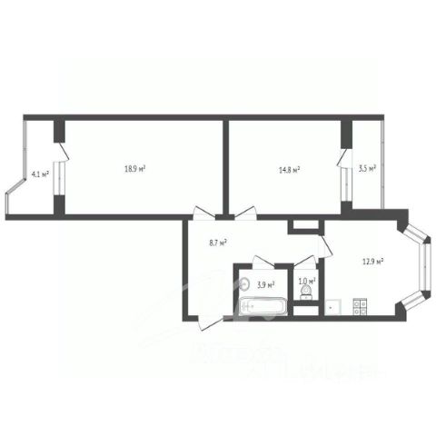 Большая, просторная кухня 13 кв.м с эркерными окнами, которые выходят на зелёный двор. Две изолированные комнаты: 19 кв.м. (комната с эркером) и 14 кв.м. Окна в комнатах выходят на 3 разные стороны. Два застекленных балкона (4 и 5 кв.м) по 1 в каждой комнате. Раздельный сан.узел.
