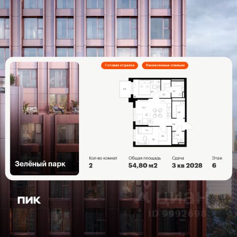 Продаётся 2-комн. квартира площадью 52,9 кв.м на 3 этаже 28 этажного дома (Корпус 6.6, Секция 5) проекта ПИК Зелёный парк. Светлый просторный подъезд на уровне земли, функциональная планировка, большие окна, c отделкой. Большой квартал с оригинальной архитектурой в обжитом районе Зеленограда. От него до станции МЦД-3 "Зеленоград-Крюково" — 20 минут пешком, до Кутузовского шоссе можно доехать на машине за 3 минуты, а до Пятницкого шоссе — за 5 минут. Характер "Зелёного парка" отражён в архитектуре. Квартал состоит из уютных разноэтажных блоков с оригинальными акцентами. Цветовая палитра проекта спокойная и сдержанная: оттенки белого и коричневого сочетаются с пастельным розовым и мятным. В проекте запланированы также два детских сада, две школы и паркинг. На первых этажах откроются магазины, кафе и другие сервисы — чтобы купить кофе и свежий хлеб к завтраку, можно будет просто спуститься на лифте. В уютных дворах-парках появятся места для отдыха, детские площадки, кофейни и зоны отдыха. Рядом — Зеленоградский лес, Парк Победы и Михайловский пруд, где можно гулять и заниматься спортом. У жителей "Зелёного парка" будет возможность получить московскую прописку. Для любителей спорта в 10 минутах пешком от квартала — велодром с BMX-трассой, физкультурно-оздоровительный комплекс Горизонт, а также лыжероллерная трасса длиной около 3 км. Артикул 970754 (Застройщик АО "СПЕЦИАЛИЗИРОВАННЫЙ ЗАСТРОЙЩИК "ЗЕЛЕНОГРАДСКИЙ") Купить 2-комнатную квартиру в Зеленограде.