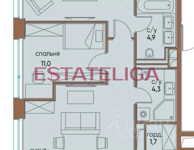 Возможно спланировать большую кухню-гостиную с прекрасной панорамой на "Москва-Сити", мастер-спальню со своей гардеробной и санузлом, вторую спальни со своим санузлом и гардеробной, дополнительную спальню, гостевой санузел, гардеробную, постирочную и холл. Благодаря панорамному остеклению пространство наполнено естественным светом и теплом.