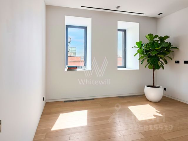 136,3 м.кв, с высотой потолков 4 метра и эксклюзивным дизайнерским ремонтом. Квартира на расположена 2-м этаже дома, рядом с каминным залом. Окна гостиной и спальни выходят на тихую улицу Малая Якиманка и православный храм.