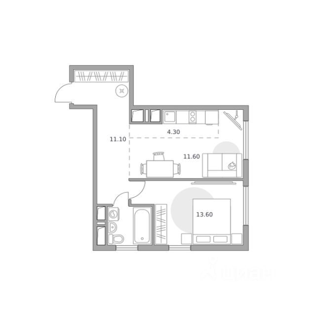 Продаётся 2-комнатная квартира 302, площадью 47,40 м², на 23 этаже в ЖК "Бригантина" корпус 1. Стоимость — от 13349096 руб. Квартира white box, планировка односторонняя, окна во двор.