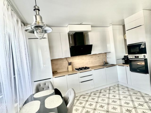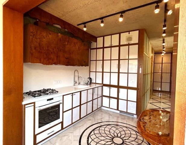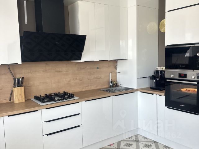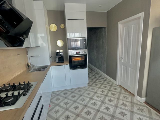 Кухня-гостиная: просторная кухня, установлена дорогая техника Bosch: посудомоечная машина, газовая плита, духовой шкаф, микроволновка. В квартире установлено индивидуальное газовое отопление.