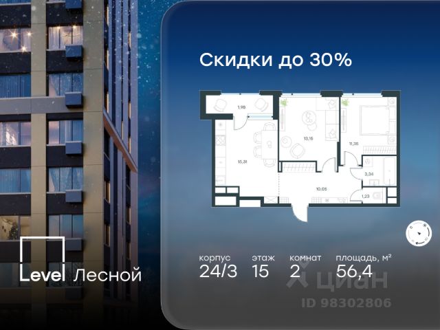 Старт продаж! Продается 2-комнатная квартира в новом клубном жилом комплексе "Павлово 3" площадью - 53.20 кв. м на 3 этаже, в корпусе 3 в малоэтажном монолитном доме от компании-застройщика. Квартира с угловым остеклением. Из окон, а также с балкона, открывается отличный вид. В квартире предусмотрен отдельный рабочий кабинет. В квартире высокие потолки 3.25 м, что дает ощущение простора. Преимуществом также является большой санузел. "Павлово 3" - премиальный уровень комфорта загородной жизни в бизнес-классе. Выбирайте камерный квартал, он станет лучшим домом для каждого, кто ценит приватность и комфорт. Срок сдачи - 2 квартал 2027. Более подробная информация по телефону. Особенности комплекса: • Высота потолков в каждой квартире - от 3 метров; • Собственный детский сад; • Авторская концепция озеленения; • МЦД-2 "Нахабино" в 5 минутах езды; • Садовое кольцо в 35 минутах езды • Локация с насыщенной инфраструктурой столичного уровня: торговые центры, кафе, рестораны, учебные заведения, развлекательные и спортивные объекты. Расположение Клубный жилой комплекс бизнес-класса "Павлово 3" возводится в экологически чистом районе престижного северо-западного направления Москвы. Здесь природа и атмосфера спокойствия соседствуют с комфортом современного мегаполиса. 7 трехэтажных корпусов, выполненных в едином современном стиле, формируют уютную камерную атмосферу. Архитектура На первых этажах домов - просторные и функциональные входные группы, где предусмотрено все: мягкий интерьер в природных тонах, дизайнерская отделка натуральным деревом и камнем, панорамные окна с видом на лес, помещения для хранения колясок и спортивного инвентаря, а также специальные подъемники для маломобильных жителей. Благоустройство "Павлово 3" - это 6 га приватной охраняемой территории, 2 км прогулочных дорожек вдоль леса, 19 зон для тихого и активного отдыха и 3963 деревьев и цветущих кустарников, высаженных непосредственно на территории комплекса. Чтобы оказаться наедине с природой теперь достаточно пары минут пешком. Для жителей "Павлово 3" создан собственный выход в лес, благоустроены лаунж-зоны на свежем воздухе и гармонично вписаны в ландшафт ливневые сады. Здесь же появится барбекю-зона для уютных вечеров в кругу семьи и друзей. Инфраструктура Жителям доступна инфраструктура престижного района с известными ресторанами, спортивными клубами и рейтинговыми учебными заведениями. На территории клубного дома детям не придется скучать. В их распоряжении - 16 игровых площадок с инвентарем из природных безопасных материалов. А для поддержания здорового образа жизни предусмотрено 5 спортивных зон, включая воркаут-тренажеры, корты для мини-футбола, волейбола, падел-тенниса и баскетбола. Для гостей предусмотрен свой паркинг, а для владельцев электромобилей - зарядные станции. Количество машиномест равно количеству квартир. Вся территория оснащена системами безопасности и камерами видеонаблюдения, работает WI-FI.