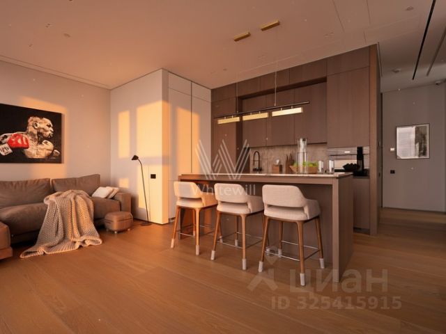 Современный ремонт выполнен в светлой цветовой палитре с использованием натуральных материалов из дерева, камня и керамогранита. Многоуровневое освещение. Система умный дом, управляемая с телефона.