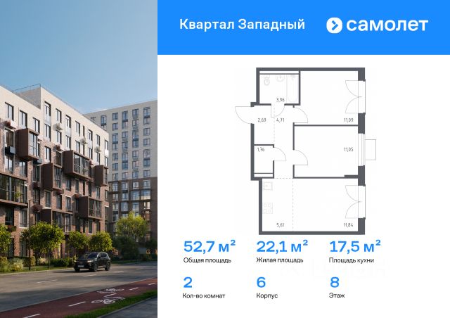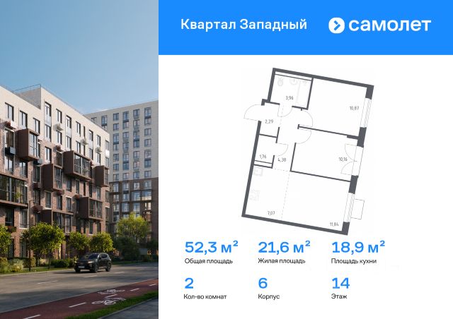 Строим кварталы для жизни с заботой о будущем. Предлагается 2-комнатная квартира комфорт-класса 52,68 кв.м в корпусе 9 на 10 этаже, в ЖК "Квартал Западный" Квартира без отделки. Доступность опции "отделка" и возможность комплектации мебелью и декором уточняйте у застройщика. Приобрести квартиру возможно по специальным акциям от застройщика, с текущими условиями акций можно ознакомиться в блоке "Акций". Цена динамическая и может отличаться, уточняйте актуальность у застройщика. Жилой комплекс в окружении лесопарков и рядом с рекой. До станции МЦД-4 "Санино" можно дойти пешком за 7 минут, а на территории проекта появится транспортно-пересадочный узел с торговым центром. Для жителей построят школу, 2 детсада, в одном из которых будут развивающие кабинеты-трансформеры. Дворы — тихое зеленое пространство без машин. В проекте появится собственный ландшафтный парк с благоустроенной набережной и центральная площадь, на которой будут проводиться различные мероприятия. Высота домов — от 5 до 15 этажей. Фасады выполняют в естественных оттенках, в соответствии с дизайн-кодом "Полевой луг". У каждой секции — свое цветовое решение. Белый цвет верхних этажей добавляет застройке легкости. Фасады облицованы клинкерным глазурованным кирпичом, который используют в проектах бизнес-класса.