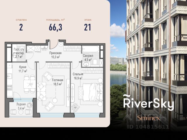 Арт. 116643151 Продается шикарная евродвушка 41 кв.м. в полностью зaсeлeннoм ЖK бизнес-класса