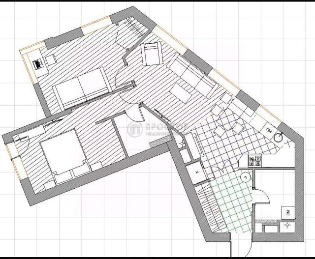 Идеальная планировка квартиры: в квартире 3 полноценные комнаты- гостиная и две спальни, одна из них с балконом. Большим плюсом является места хранения и гардеробная, а также балкон.