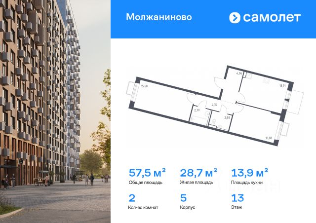 Прямая продажа от застройщика! Жилой Комплекс класса Комфорт Плюс. Продаётся 2-к квартира номер 183 общей площадью 53 кв.м. на 13-м этаже 13 этажного здания. Чистовая отделка. Цена с учётом скидки. Особенности квартиры: - Просторная спальня, в которой можно разместить большую кровать. - Линейная планировка - максимальная функциональность и удобство. - Раздельный санузел - больше удобства для всех членов семьи. - Увеличенная высота потолков - ощущение простора и легкости. - Гардеробная - удобство для хранения и организации вещей. - Лоджия - уютное место для отдыха и тишины. - Панорамное остекление лоджии - открывает вид на окружающий мир. Информация о комплексе: В концепции благоустройства гармонично сочетаются черты двух городов. Территорию комплекса пронизали стрелы прогулочных бульваров, уменьшенные копии петербургских проспектов. Стремимся, чтобы каждый элемент ЖК был продуман, наполнен комфортом и заботой для всех жителей, включая четырехлапых. В каждой квартире подключен базовый пакет Умная квартира забудьте о беспокойстве о протечке; настройте свои сценарии управления техникой и электричеством; общайтесь с Умной квартирой голосом; Можете легко расширить базовый пакет и подключить дополнительные опции и устройства, чтобы из любой точки мира управляй работой бытовых приборов и систем, например: включайте разогрев ужина; регулируйте яркость яркость света; регулируйте громкость музыки; настраивайте работу теплых полов. Транспортная доступность: 15 минут пешком до станции Молжаниново (Планерная), МЦД3. Всего в 7 км от МКАД по Ленинградскому шоссе, сразу после пересечения с Международным шоссе. Внутренняя инфраструктура: Для детских игр и отдыха взрослых в квартале предусмотрено множество вариантов уютных московских двориков. Детские зоны отделены от взрослых, спортивные площадки и зоны воркаута с их шумными играми вынесены за пределы дворов. В обустройстве всех зон использованы только экологичные материалы. Оборудование для игровых площадок разрабатывалось с привлечением детских психологов. Для любителей велосипедов проложены велодорожки, ведущие к живописным прудам. Если же вам нужно в магазин, аптеку, а может, просто захотелось посидеть с семьей или друзьями в кафе по соседству - все необходимое расположено на первых этажах зданий с внешней стороны комплекса.