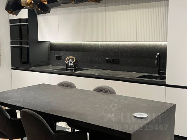 Встроенные USB и Type-C розетки, у кухни есть остров, из острова выезжает розетка с функцией беспроводной зарядки