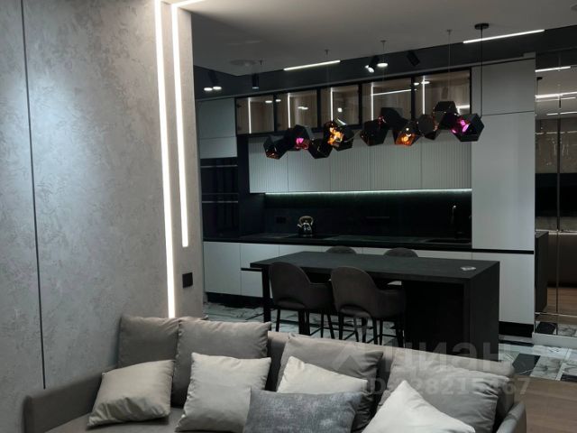 Потолки с парящей линией и диммируемой подсветкой, трековые светильники, брендовая люстра с функцией изменения сценариев освещения с телефона и Алисы(цвет, эффекты итд), есть 4 встроенные в потолок колонки (нужен ресивер, обсуждается с жильцами)