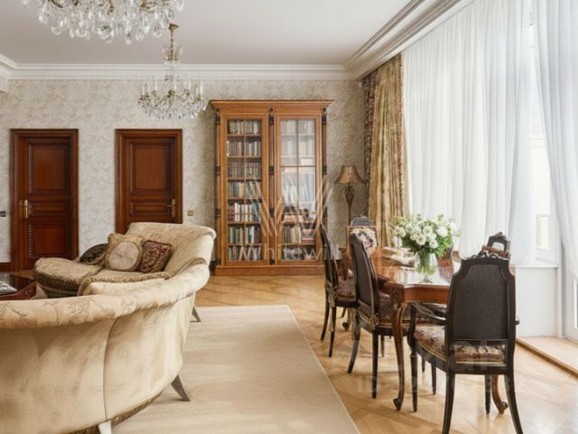 Продается квартира с премиальной отделкой на 4-м этаже общей площадью 214 кв.м. с 2-мя спальнями и кухней-гостиной. О жилом комлексе Компания Vesper представляет проект "Левенсон" в исключительной локации — на Патриарших прудах. Проект собирает комбинацию из легендарных исторических зданий типографии поставщика императорского двора Александра Левенсона и объектов современной архитектуры. Новый проект Vesper создан для ценителей подлинных исторических особняков, наполненных совершенными технологиями для создания абсолютного уровня комфорта и эстетики жизни. Клубный дом "Левенсон" объединяет сразу несколько форматов жилой недвижимости, отвечающих самым высоким запросам: современный дом, два исторических здания, частная резиденция. В проекте представлены квартиры и апартаменты с патио, таунхаусы, пентхаусы с террасами. О застройщике Девелопер проекта Vesper специализируется в премиальном сегменте клубной жилой недвижимости. Портфель компании включает 22 проекта в Москве и странах Европы. Актуальные архитектурные проекты, индивидуальный дизайн, передовые технологии, качественные материалы и лучшие мировые практики воплощены в каждом доме компании. Расположение и транспортная доступность Расположение проекта в районе Патриарших прудов позволит резидентам чередовать яркие впечатления от динамичной жизни в мегаполисе с комфортным отдыхом в уединении. Лучшие рестораны высокой кухни, кафе, театры, выставочные залы и бутики здесь соседствуют с тихими переулками и скверами. Архитектура Архитектурная концепция от бюро "Цимайло, Ляшенко и партнеры" гармонично дополняет шедевры модерна новыми формами и материалами. Все квартиры предлагаются с высококачественной отделкой натуральными материалами, оборудованными кухнями и ванными комнатами. Комфорт жизни резидентов будут обеспечивать шумопоглощающие окна, многоуровневая система очистки воды, технология "умный дом" и система очистки воздуха. Инфраструктура Вся территория резиденций "Левенсон" объединена ландшафтным дизайном, выполненным в изящных пропорциях клубного пространства. Благодаря смене архитектурных эпох между зданиями сформировалось несколько камерных пространств, каждое из которых архитекторы бюро Basis представили в виде отдельной комнаты. Технические детали проекта: — Инновационная система микроклимата. — Приточно-вытяжная вентиляция с подготовкой и увлажнением воздуха. — Система контроля и управления доступом, видеонаблюдение. — Служба ресепшн. Техническая служба эксплуатации и обслуживания здания. — Многоуровневая система очистки воды. — Бесперебойное обеспечение горячей водой. — Окна с повышенным уровнем шумоизоляции.