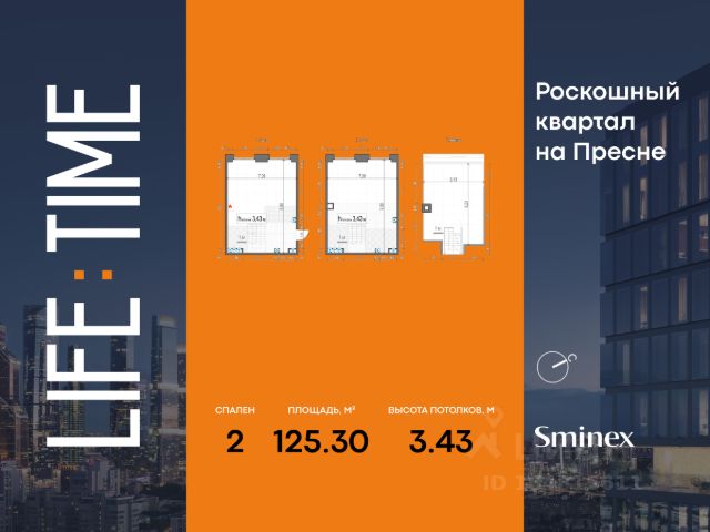 Двухэтажный пентхаус площадью 126,2 кв. м с террасой (55,5 кв. м). Просторная кухня-гостиная станет точкой притяжения всей семьи. Высокие потолки (3,5 метра) и панорамные окна позволяют наслаждаться лучшими закатами Пресненского района. Две спальные комнаты со своими гардеробными и санузлами расположены на втором этаже, а собственная терраса с неповторимыми видами делает пентхаус идеальным местом для комфортной и по-настоящему роскошной жизни. Данный пентхаус оборудован собственным дровяным камином. Life Time - роскошный современный квартал на Пресне, в наиболее быстро растущем премиальном районе ЦАО. Его насыщенная инфраструктура и выгодное расположение дарят время для жизни. Вы больше не тратите его на дорогу или ожидание, при этом ни в чём себе не отказывая. На территории предусмотрено всё для комфортной жизни: • двор-парк площадью 1,8 гектара с прудом и фонтанами; • Clubhouse - инфраструктурный центр в отдельном здании с исчерпывающими возможностями для спорта, отдыха и досуга только для жителей; • спортивная инфраструктура на улице и в помещении, в том числе бассейн длиной 25 метров, хот-таб, хаммам, сауна, бьюти-зона; • клубная гостиная с террасой; • всё для развития и досуга детей любого возраста, в том числе детский сад и школа. Life Time находится в центре сложившегося премиального района, в окружении многочисленных парков. Удобная транспортная доступность и прямой выезд на Звенигородское шоссе позволяют без проблем добраться до Садового кольца и Москва-Сити. Архитектурный стиль квартала - роскошный минимализм. Дома десятилетиями будут выглядеть современно.