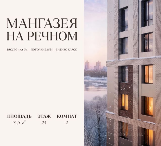 В продаже 2-к квартира площадью 71.5 м2. Функциональная планировка, кухня-гостиная, просторные санузел и гардеробная. Квартира расположена на 24-м этаже 24-этажного дома. Условия покупки: - Семейная ипотека от 3,5% на весь срок - Ипотека 0,11% на первый год - Рассрочка без процентов - Trade-in с проживанием на время строительства дома "Мангазея на Речном" расположена рядом с набережной, парками и территорией Северного речного вокзала. Первая очередь проекта два дома 12 и 24 этажа с приватным двором, ландшафтным благоустройством и инфраструктурой только для резидентов: кинозал, коворкинг, переговорные, зоны отдыха и комнаты для занятия фитнесом. Инфраструктура: - Школа на 1000 мест и детский сад - Дом Wellness со СПА-центром, фитнесом и массажными кабинетами и два бассейна, один из них под открытым небом - Два бассейна, один из них под открытым небом - Прогулочная набережная протяженностью 3,2 км с террасами - Зона воркаута и детские площадки - Ретейл, кафе, рестораны и бутики на первых этажах - Причалы для остановки яхт и небольших катеров Транспортная доступность: - 10 минут пешком до м. Речной вокзал - 15 минут пешком до м. Беломорская - 15 минут на машине до Белорусского вокзала - 17 минут на машине до Садового Кольца В первых корпусах "Мангазеи на Речном" представлены квартиры бизнес-класса с мастер-спальнями, террасами и видами на парк. Эксклюзивные форматы лоты с увеличенной высотой потолков и собственными выходом на благоустроенную территорию.